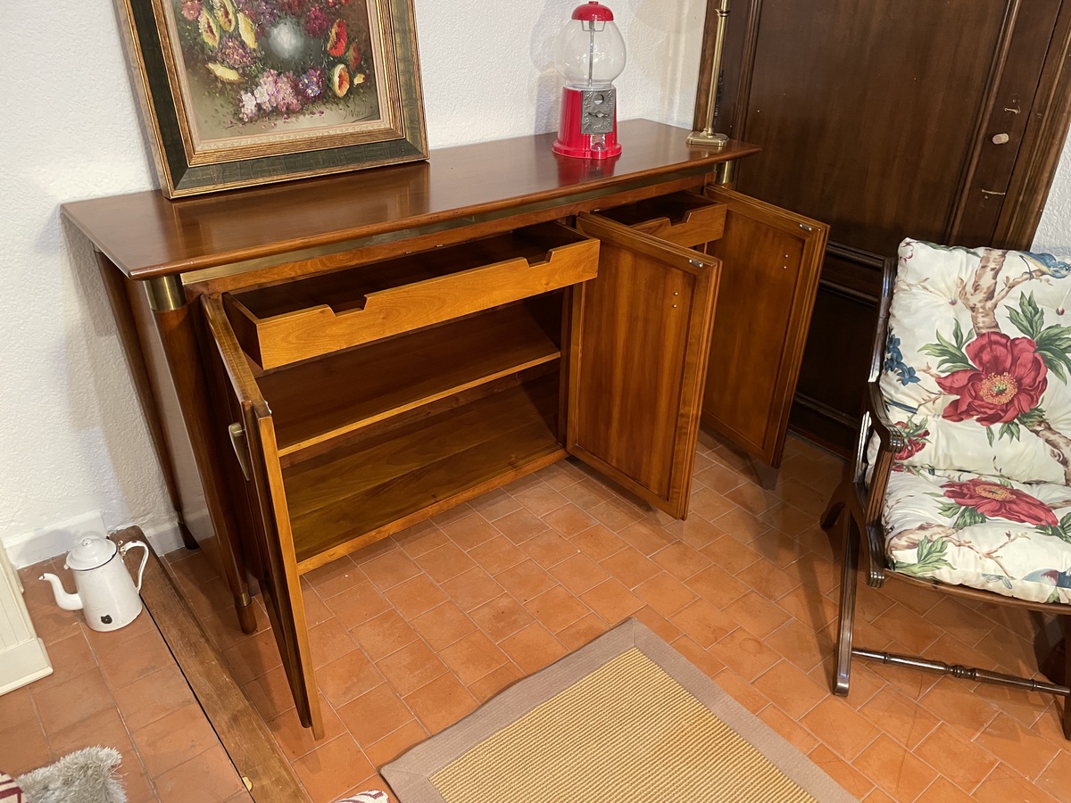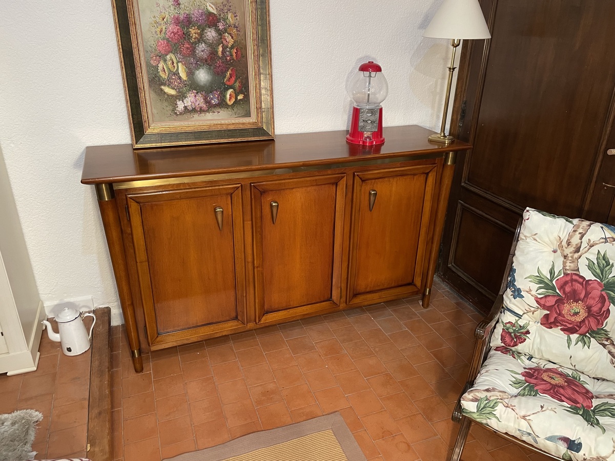 APARADOR VALENTI ALMAZAN 3 PUERTAS , CAJONES EN EL INTERIOR, FABRICADO EN MADERA DE NOGAL CON DETALLES DE LATON, CONSULTAR PORTES.
