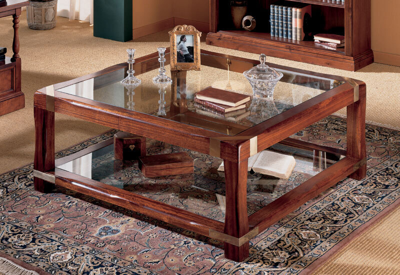 MESA BAJA DEZA 110*110*45 FABRICADA EN MADERA DE IROKO CON DESGASTES Y LATON EN LAS ESQUINAS, CONSULTAR PORTES.
