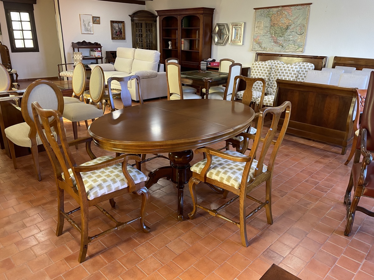 MESA OVALADA ALMAZAN EN MADERA DE HAYA CON LA TAPA EN CEREZO, 165*110*78 + EXT. DE 40, CONSULTAR PORTES.