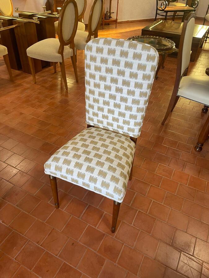 SILLA VALENTI TAPIZADA EN TEJIDO DE GASTON Y DANIELA, DETALLES DE LATON EN LA MADERA, CONSULTAR PORTES.